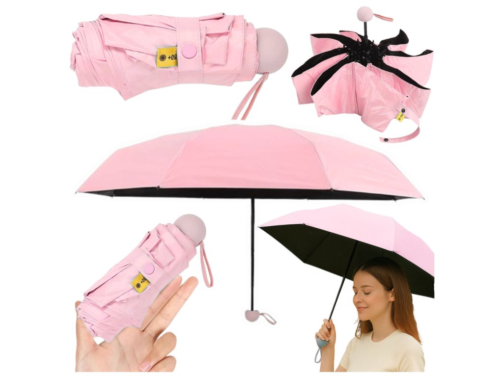 Kapesní skládací deštník s ochranou proti UV záření UPF 50+ je ideálním společníkem pro všechny počasí. S průměrem 90 cm a elegantním pastelově růžovým odstínem dodává styl a chrání vás před deštěm i sluncem. Díky lehké konstrukci se snadno vejde do vaší tašky či větší kapsy, což z něj činí perfektního pomocníka na cesty. Materiál deštníku je vyroben z odolného polyesteru, který zaručuje vysokou ochranu proti UV záření díky povrchu UPF 50+, chránící vaši pokožku i během horkých dnů. Kulatá rukojeť zajišťuje komfortní uchopení a stabilní konstrukce vám poskytuje spolehlivost v každých povětrnostních podmínkách. Ochranné pouzdro, které je součástí balení, chrání váš deštník před znečištěním a umožňuje snadné přenášení.