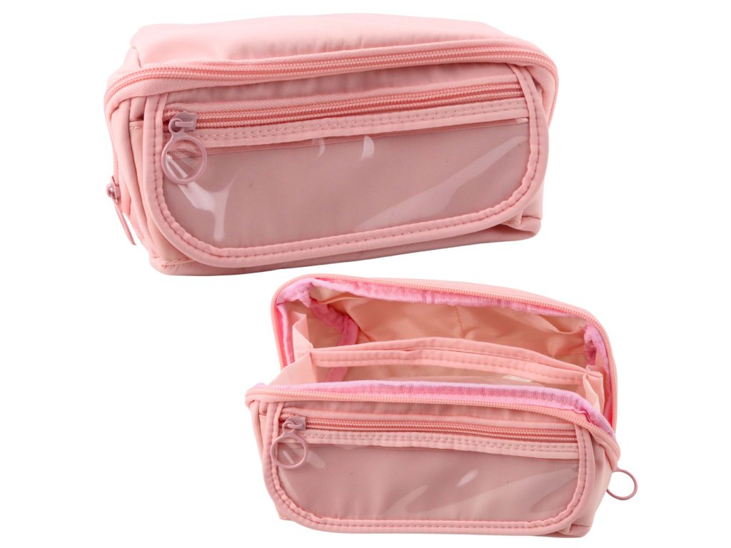 Růžový rozkládací školní penál s průhlednou kapsou 20x10cm