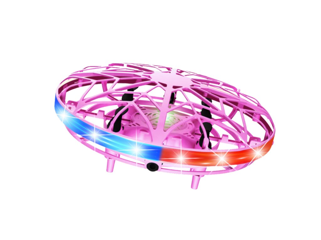 Růžový UFO dron ovládaný rukou je inovativní hračka, která posouvá létání na zcela novou úroveň Díky pokročilým senzorům lze zařízení ovládat bez použití ovladače