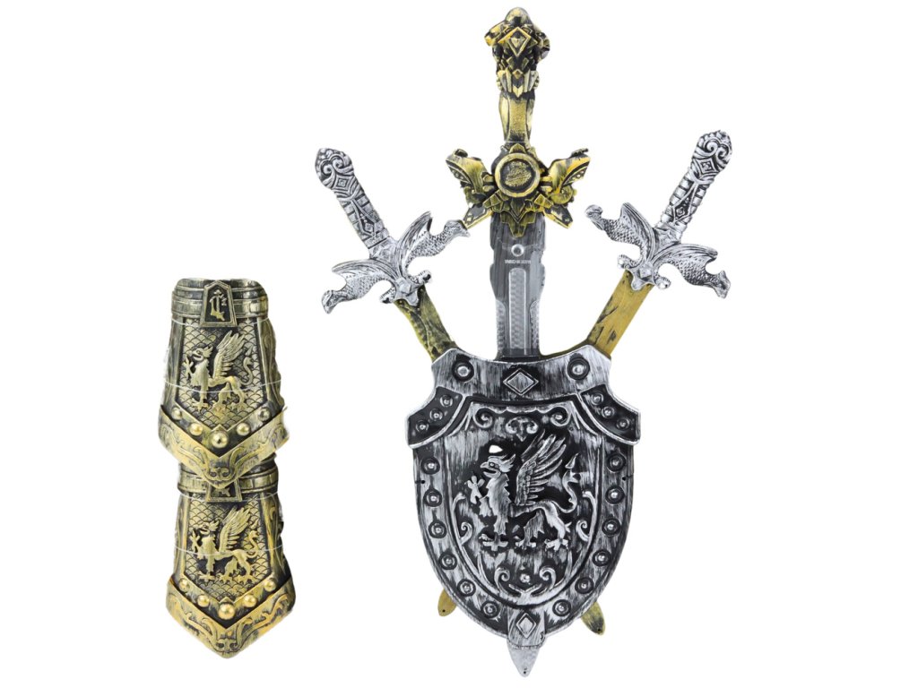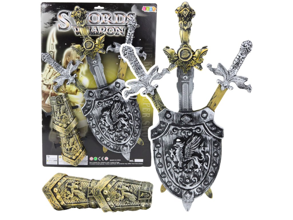- Tato sada nabízí vše, co odvážný rytíř potřebuje: tři realistické meče, dekorativní štít a chrániče pro plnohodnotnou zábavu
