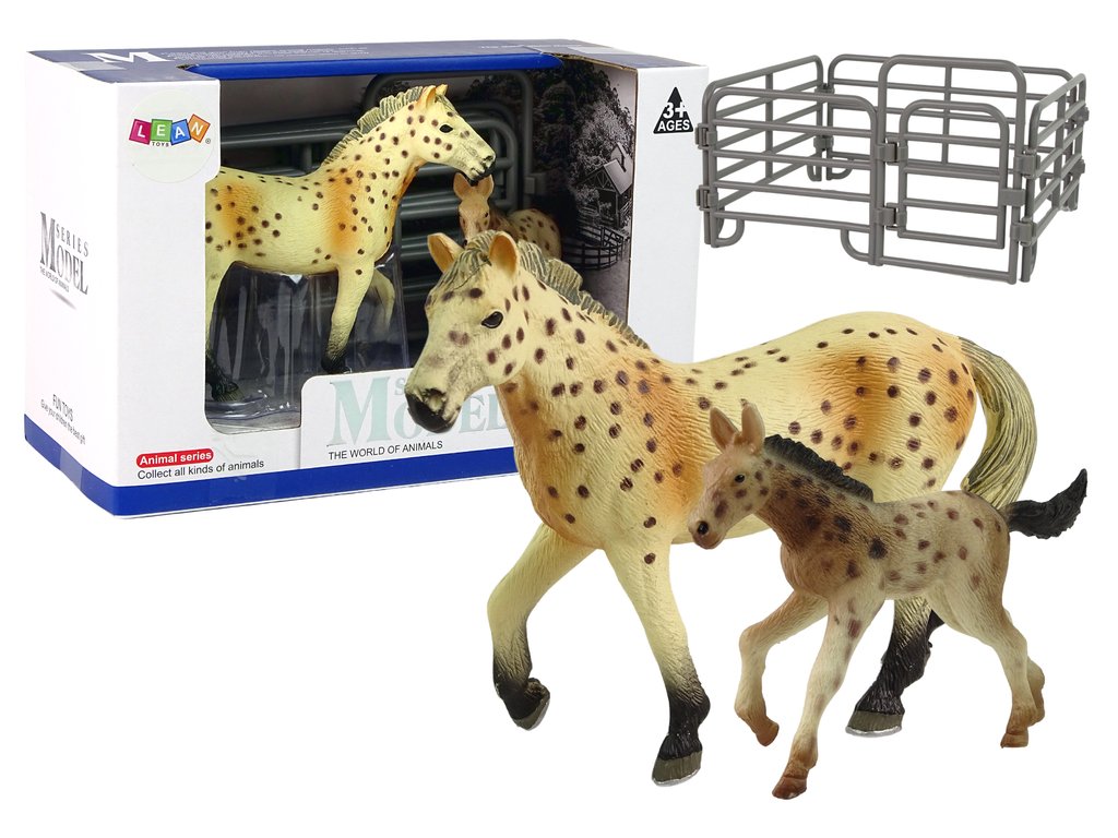 - Sada 2 figurek koní Kůň plemene Knabstrupper s hříbětem a ohradou Skvěle zpracované figurky koní s důrazem na detaily obohatí sbírku každého malého sběratele