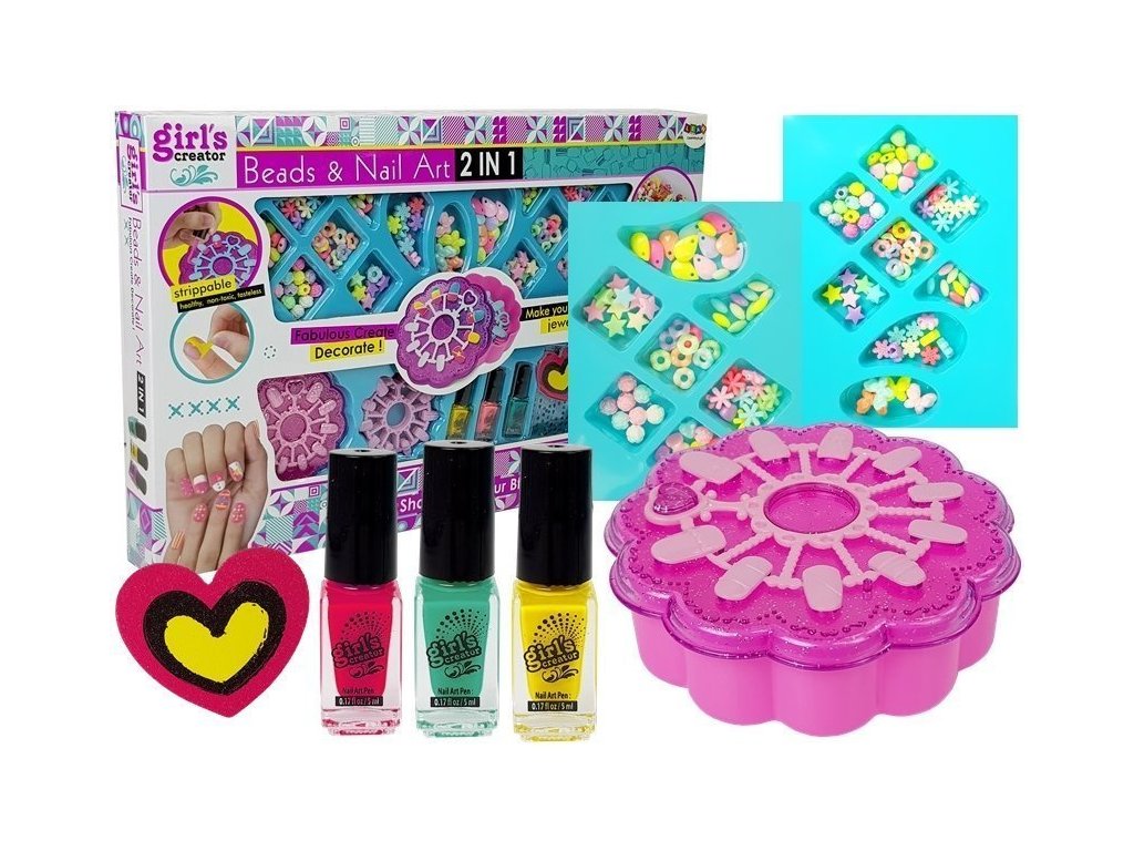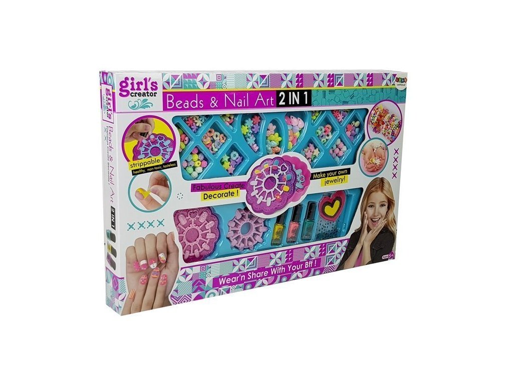 Pomocí pestrého výběru korálků a třpytivých džeťů si vytvoří své vlastní šperky a originální doplňky Díky našim bezpečným a netoxickým lakům na nehty si vaše dítě může užívat kreativní zdobení nehtů, které schne rychle, takže výsledek je viditelný téměř okamžitě