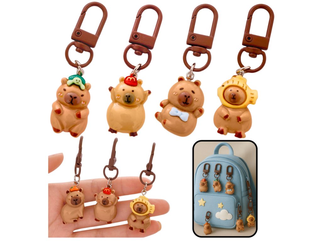 Sada 4 Mini Přívěsků Kapibara: Ozdobné Klíče a Doplněk pro Sběratele