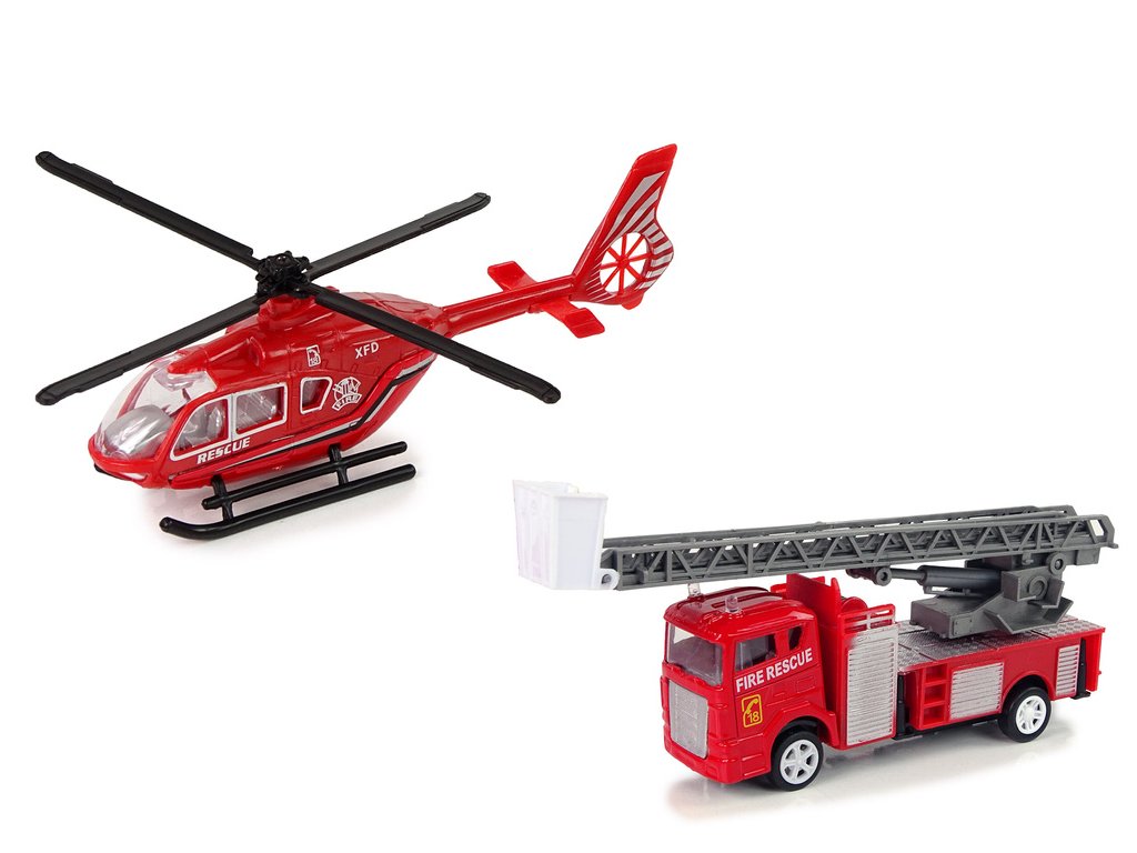 - Sada autíček hasičů s natahovacím vrtulníkem Je to ideální hračka pro každého milovníka speciálních služeb