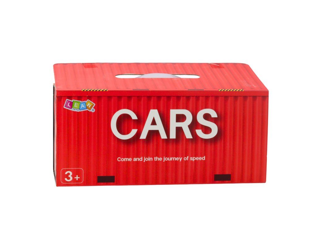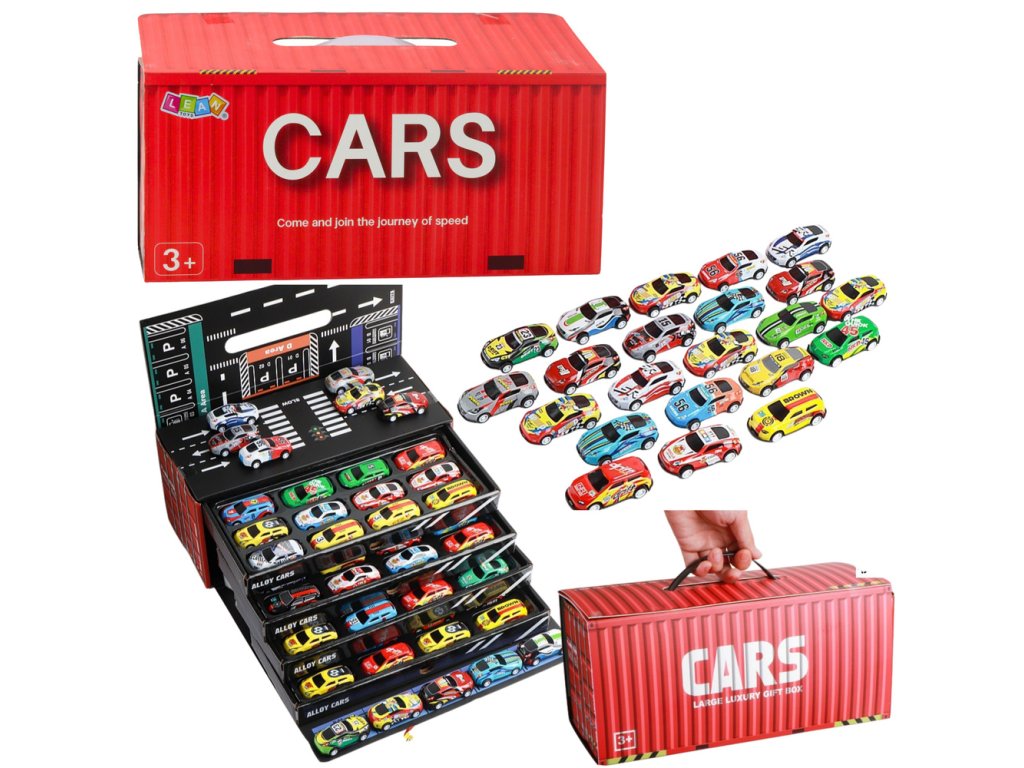 - Autíčka jsou uložena v praktickém kontejneru, který funguje také jako kufřík s rukojetí