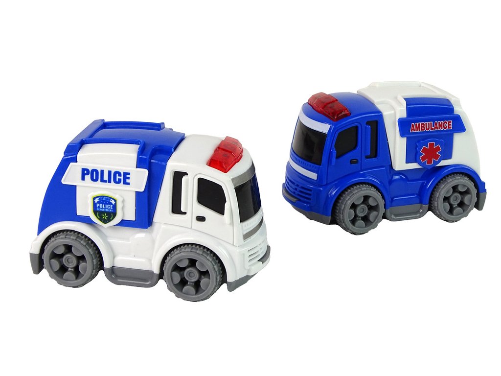 - Přinášíme vám dvou autíček, sanitky a policejního vozu, přizpůsobených pro malé ručky vašeho dítěte