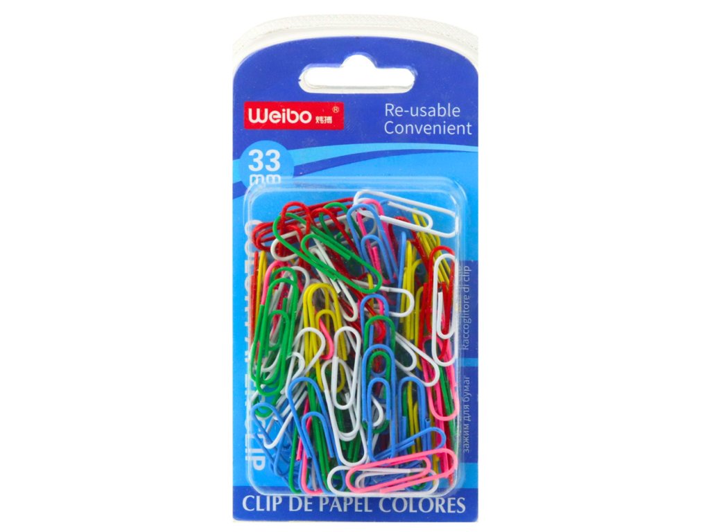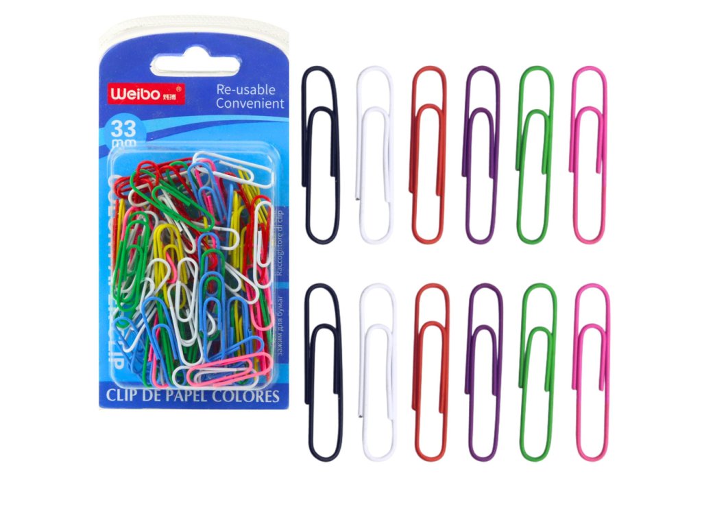 - Sada barevných kancelářských sponek na papír o délce 33 mm je praktickým a estetickým řešením pro organizaci dokumentů, poznámek a školních i kancelářských materiálů