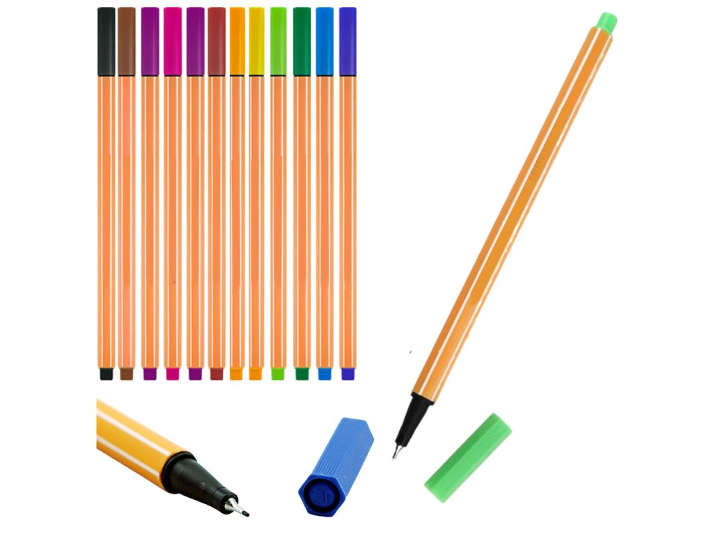Cienkopisy školní a kancelářské sada 12 kusů, tloušťka čáry 0,4 mm