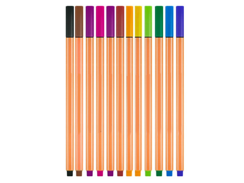 Cienkopisy školní a kancelářské – sada 12 kusů, tloušťka čáry 0,4 mm.