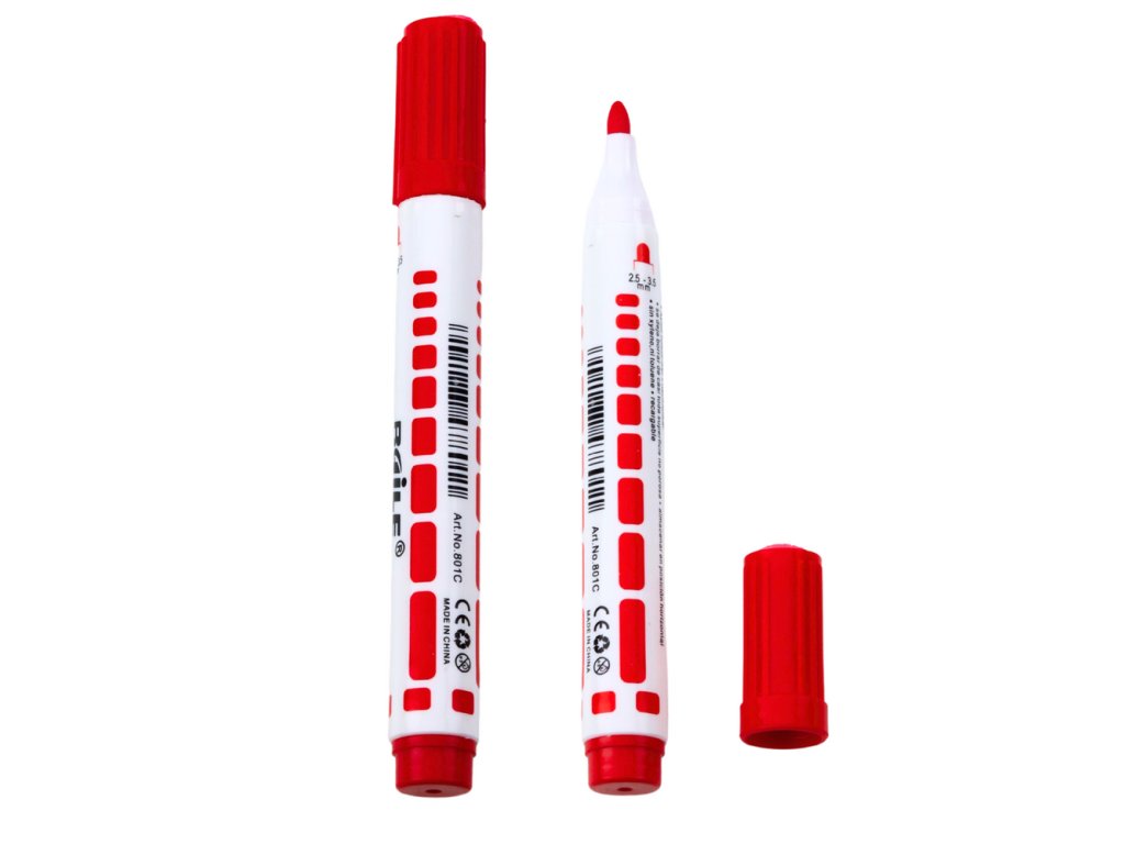 - Díky intenzivní červené barvě a pohodlné, ergonomické konstrukci, popisovače zajišťují přesné a čitelné psaní, i při delším používání