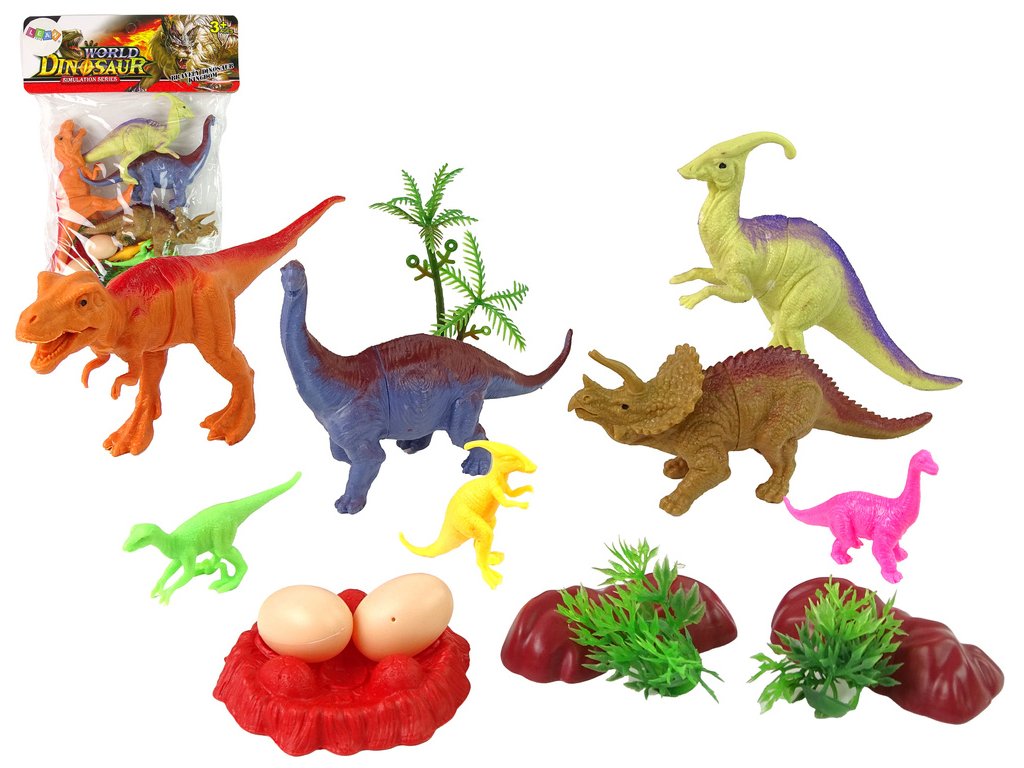 - Tři malé dinosaurské figury, které dodávají dynamiku a rozmanitost celé sadě