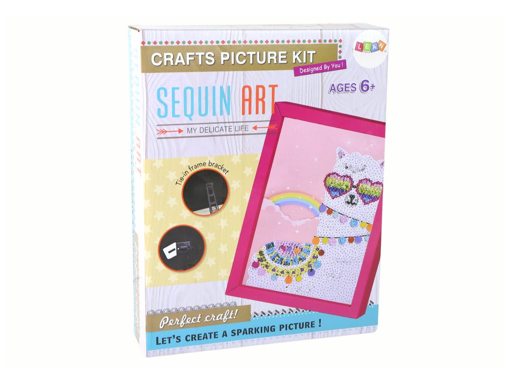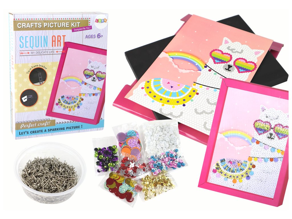 DIY sada flitry, špendlíky, lama, rámeček, barevná DIY sada je kreativní dobrodružství čekající na všechny milovníky vlastních výtvorů Najdete v ní vše, co potřebujete k vytvoření jedinečných a třpytivých děl