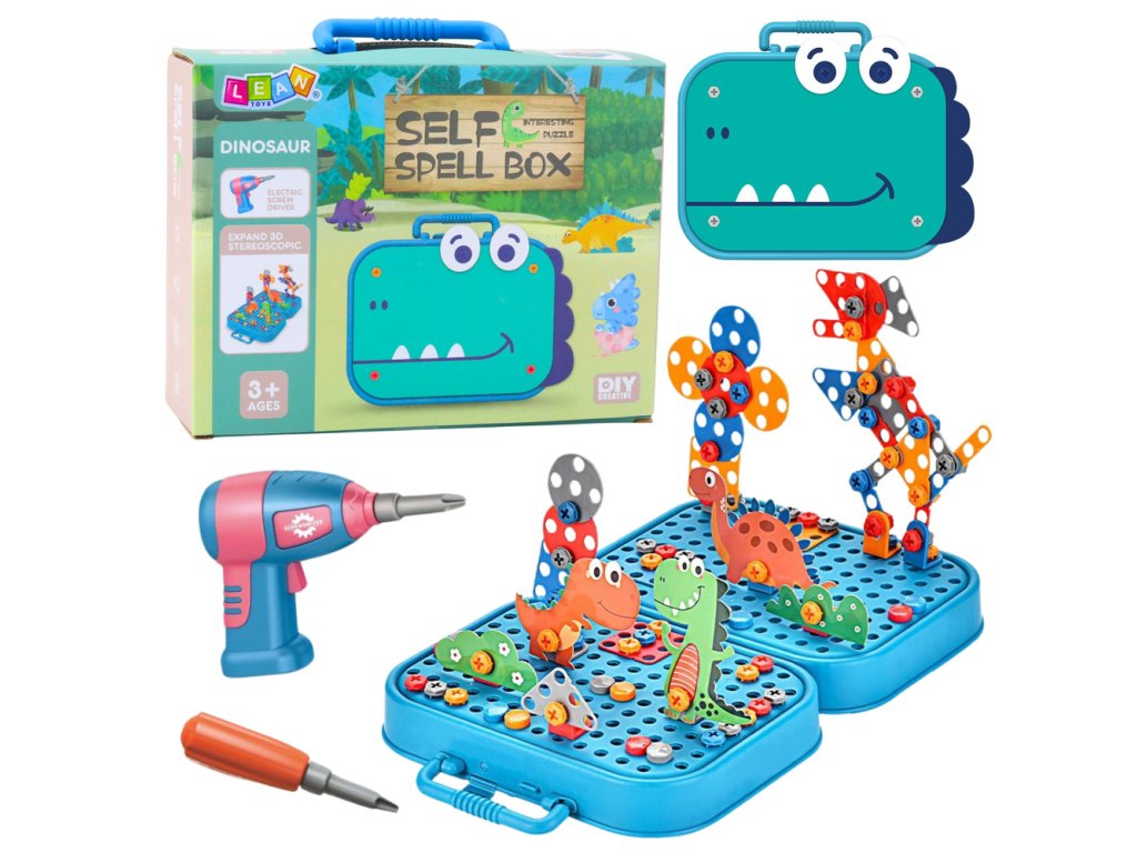 Sada DIY Šroubovací Kufřík Puzzle Dinosauři Kostky Vrtačka 228ks