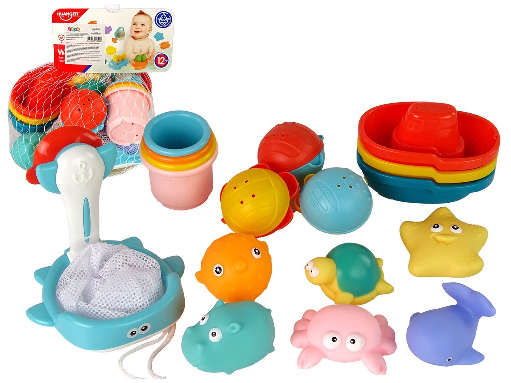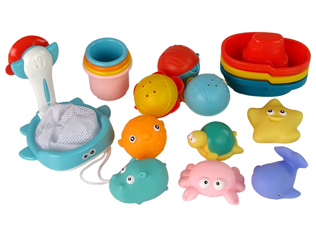 Sada Do Koupelny Hračky Mořské Podběrák Lodičky 17 Kusů