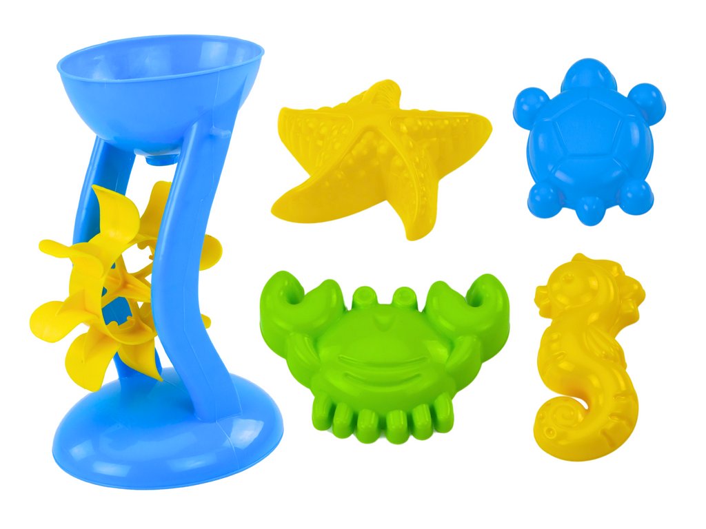 - Čtyři tvarované formičky v podobě mořských tvorů jako mořský koník, hvězdice, krab a želva