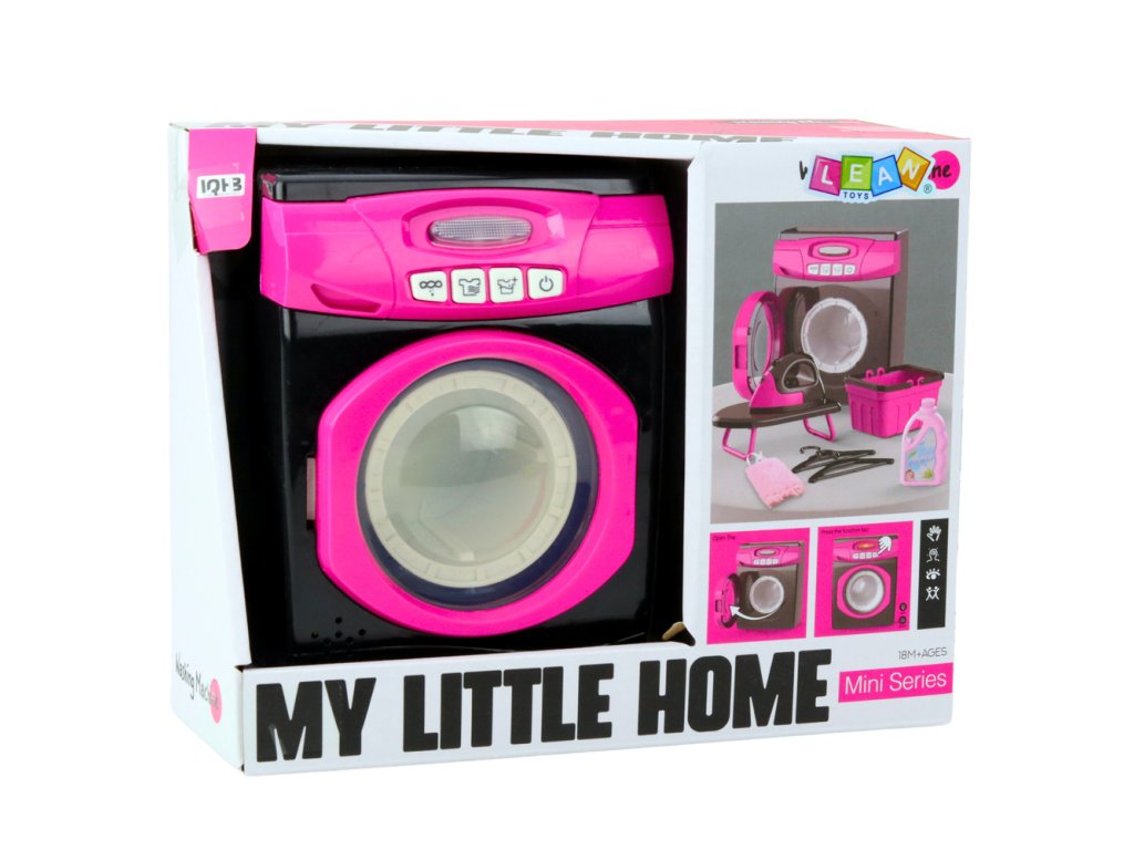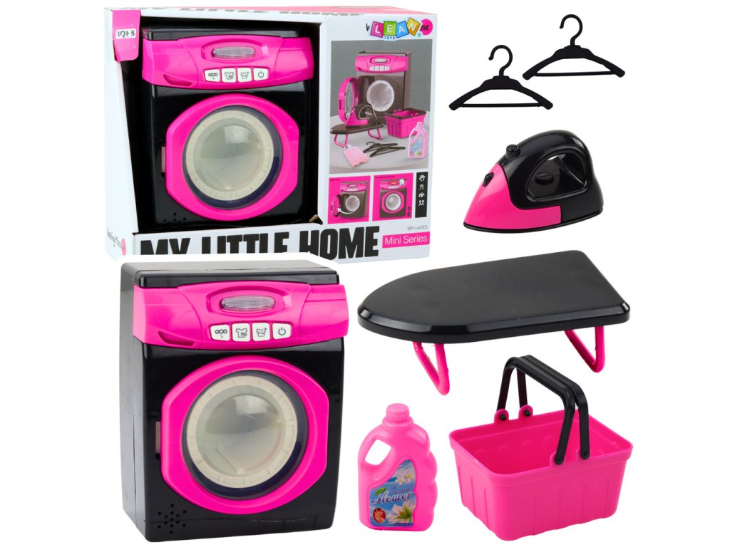 Sada domácích spotřebičů Interaktivní pračka Zvukové efekty Doplňky Černo-růžová