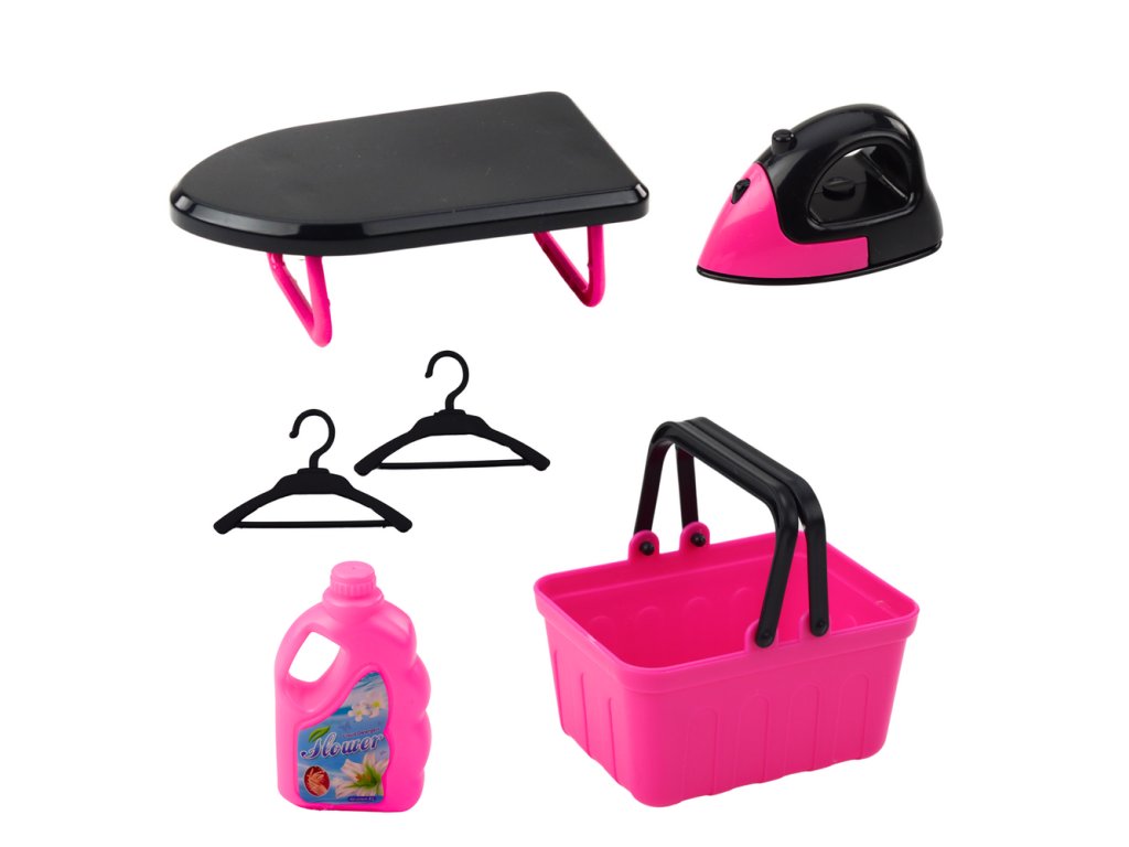 - doplněné příslušenství jako žehlička, prkno na žehlení, koš na prádlo, láhev s detergentem a věšáky Pro děti starší 3 let je tento set skvělým nástrojem pro rozvoj představivosti a manuální dovednosti
