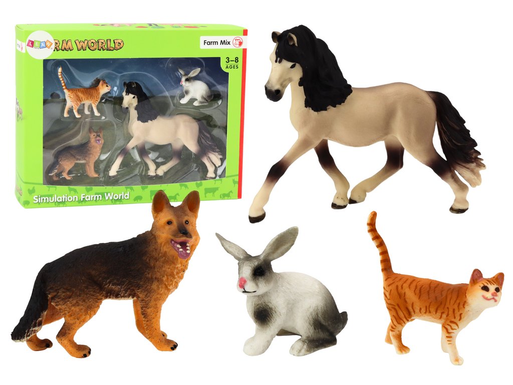 Představujeme vám sadu domácích zvířecích figurek, která přenáší děti do světa jejich oblíbených mazlíčků. Tento úžasný set obsahuje 4 realisticky ztvárněné figurky zvířat, včetně koně, králíka, psa a kočky. Každá figurka je precizně vyrobena, aby věrně odrážela charakteristické rysy a vzhled těchto populárních zvířat.