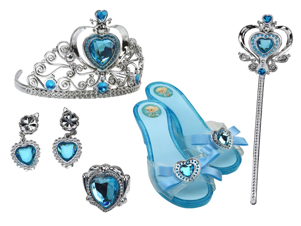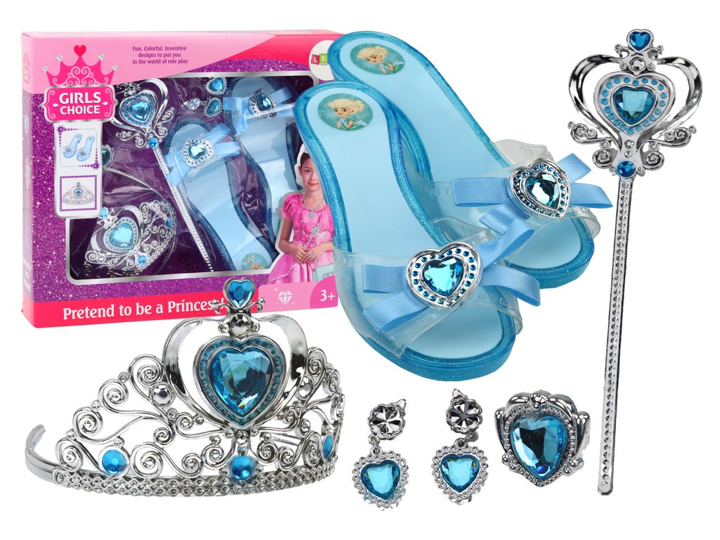 - Tato sada s majestátní korunou a půvabnými střevíčky v modré barvě promění každou malou slečnu v opravdovou princeznu