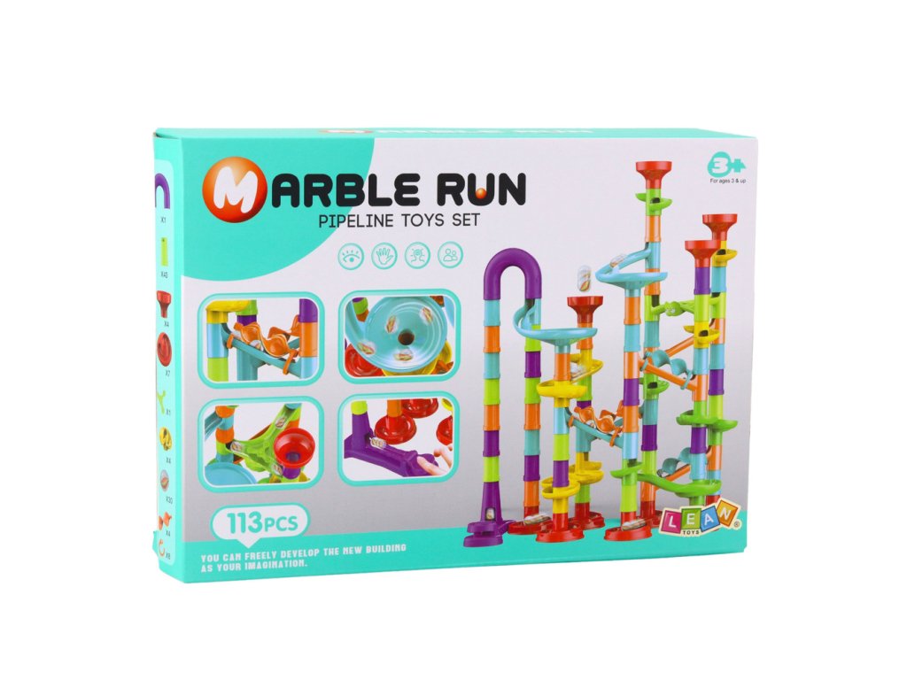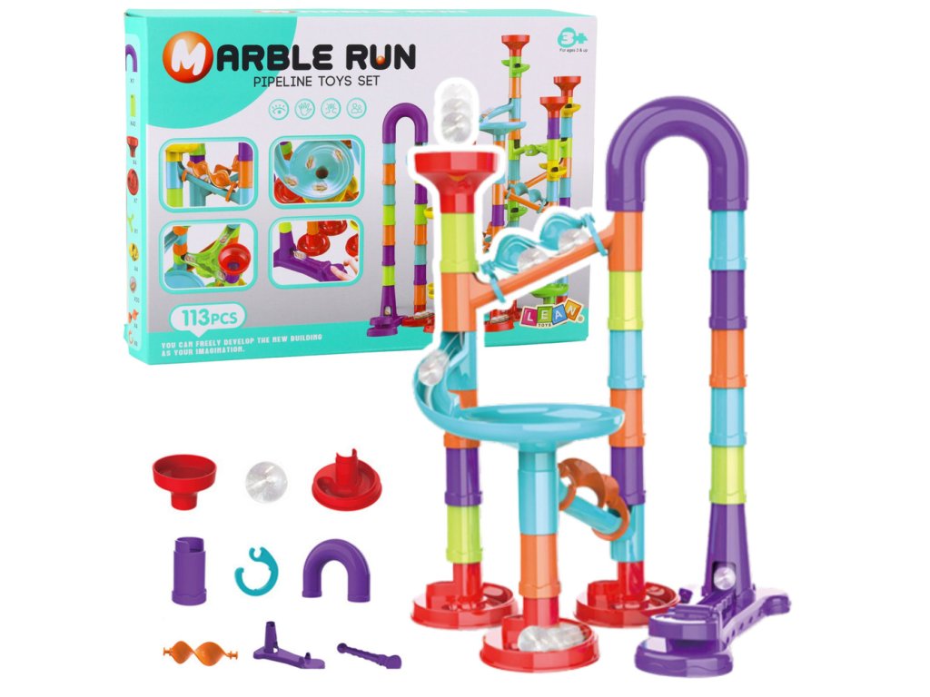 dítě může využít hotových vzorů uvedených na obalu nebo navrhnout zcela nové trasy s využitím různých skluzavek, zatáček, kolovrátků a vystřelovačů Hračka skvěle rozvíjí manuální dovednosti, prostorové myšlení a schopnost logického plánování