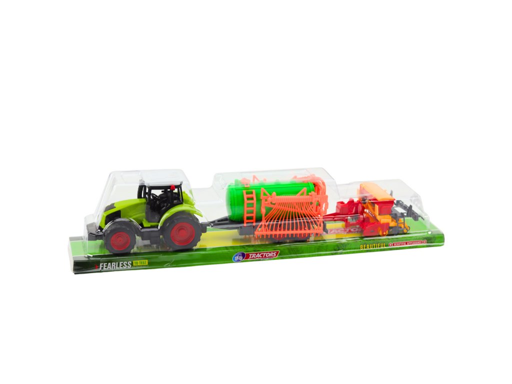 Traktor zemědělský s cisternou a hrabací soupravou je ideální nabídkou pro děti, které se zajímají o zemědělství a rády si hrají na farmě.