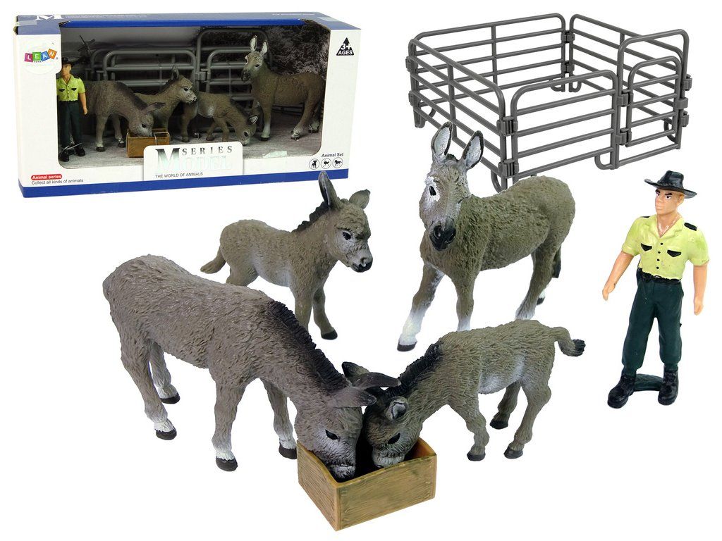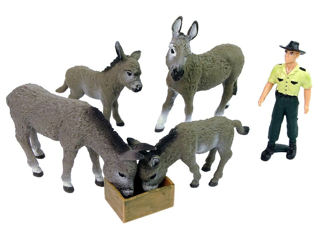 Sada figurek Čtyři oslíci Farmář Plot Šedá Skvěle zpracované figurky s nejvyšší péčí o detaily, které rozšíří sbírku každého malého sběratele Každá figurka byla pečlivě odlita z plastu a velmi pečlivě namalována, takže věrně odpovídá skutečnému vzhledu zvířete, postavy nebo předmětu