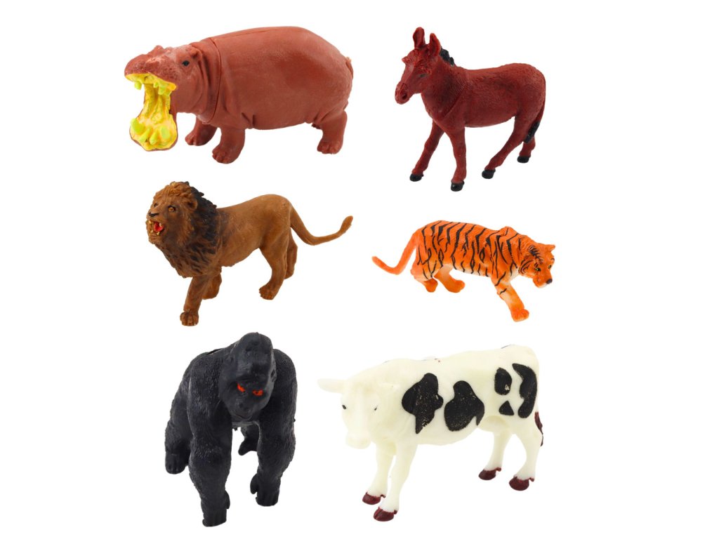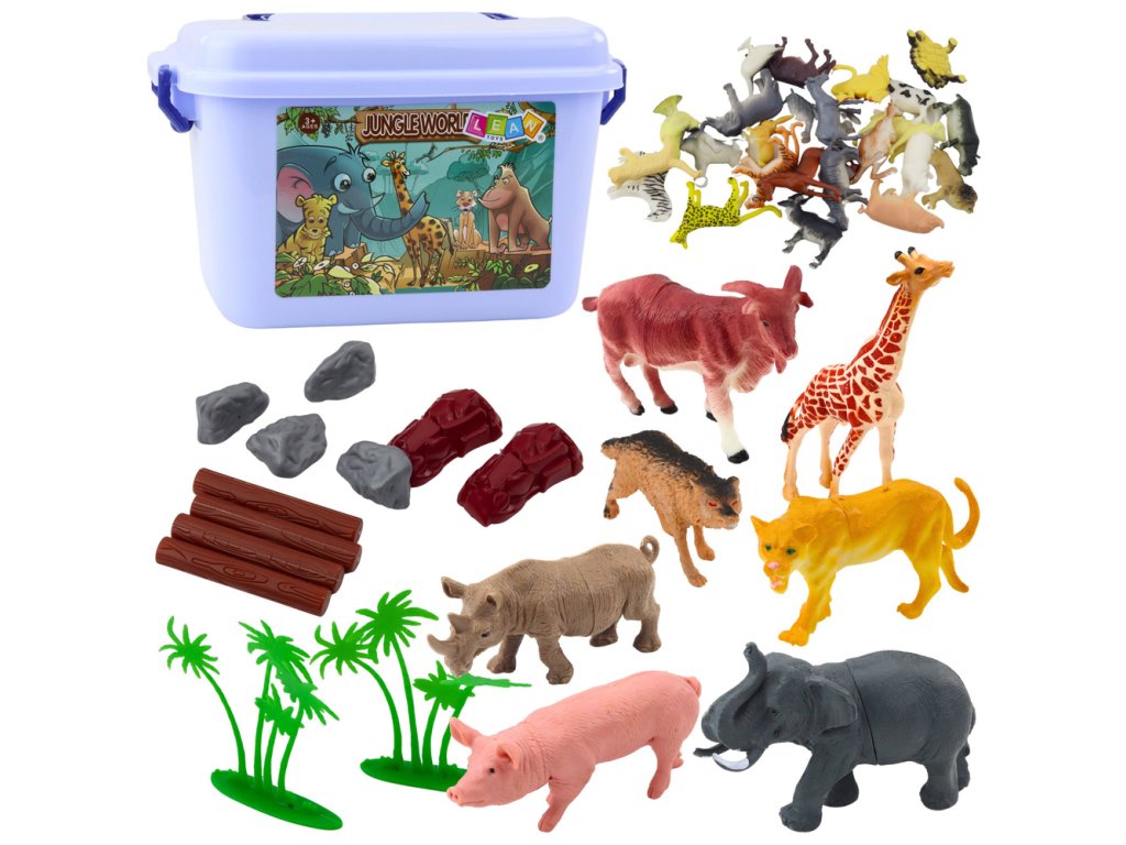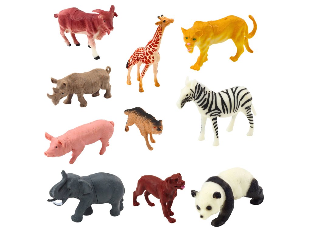 - V sadě se nacházejí jak velké, tak malé figurky představující různé druhy: od exotických zvířat safari, jako je žirafa, tygr, zebra či slon, po známější domácí a farmářská zvířata jako slepice, kočka, pes či kachna
