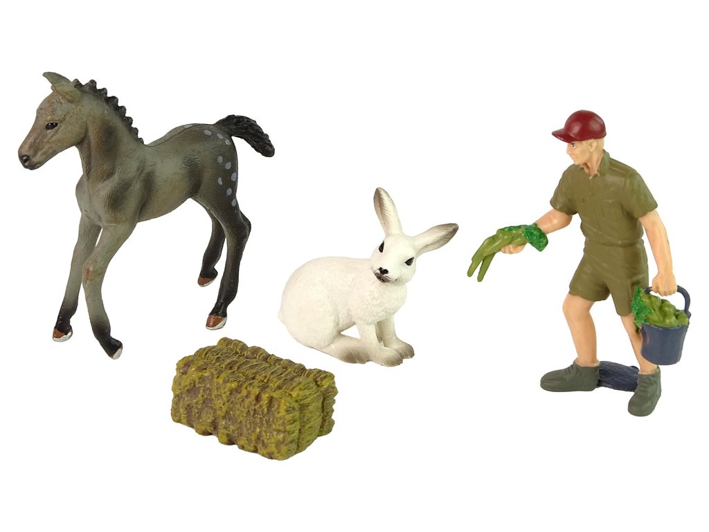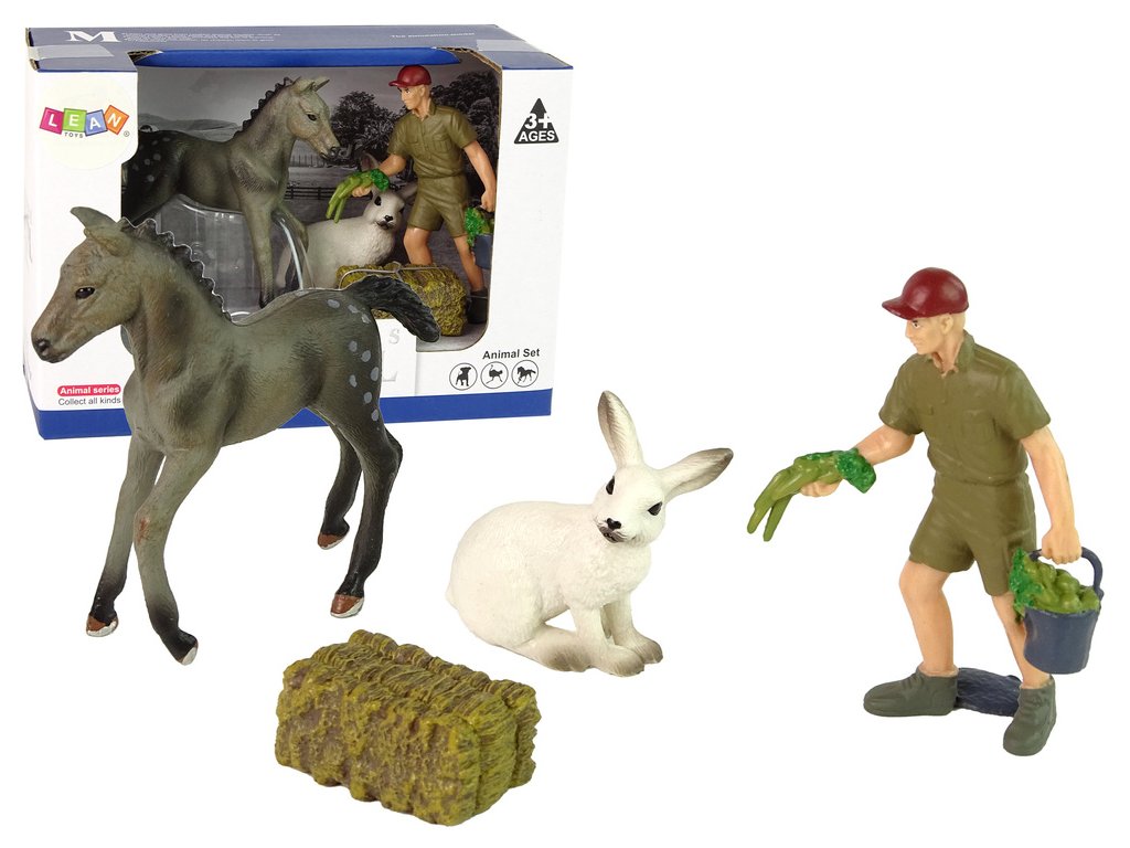 Sada figurek zvířat Šedý kůň, zajíc, farmář Skvěle zpracované figurky zvířat s důrazem na detaily obohatí sbírku každého malého sběratele Především doplní sbírku farmy a budou skvělým doplňkem pro hry, které podnítí fantazii a kreativitu vašeho dítěte!