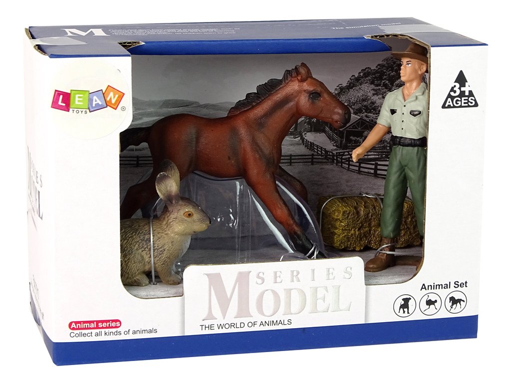 Sada figurek zvířat: kůň, zajíc, farmář Skvěle zpracované figurky zvířat s důrazem na detaily obohatí sbírku každého malého sběratele.