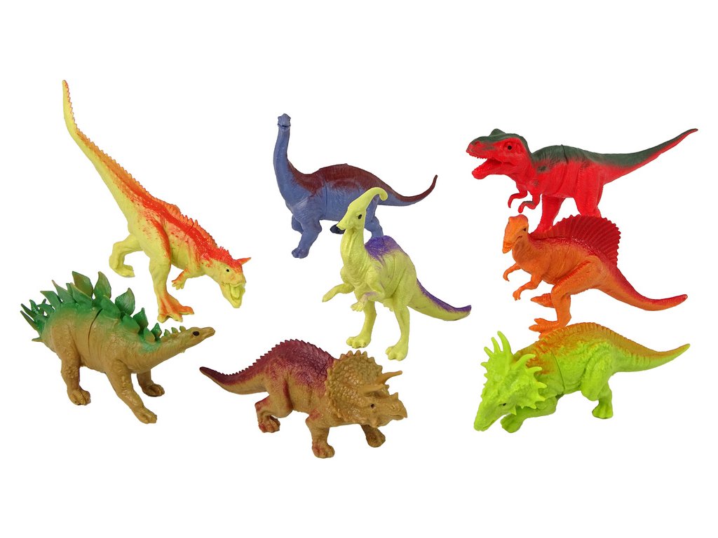 - Sada obsahuje osm dinosaurů, z nichž každý představuje jiný druh