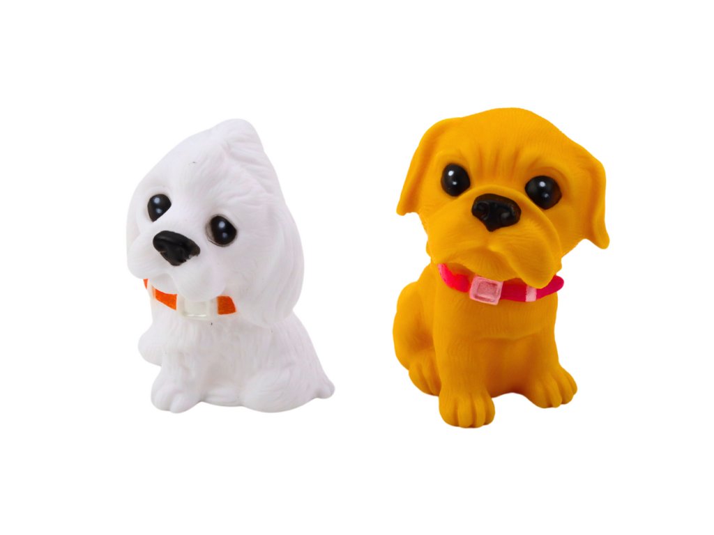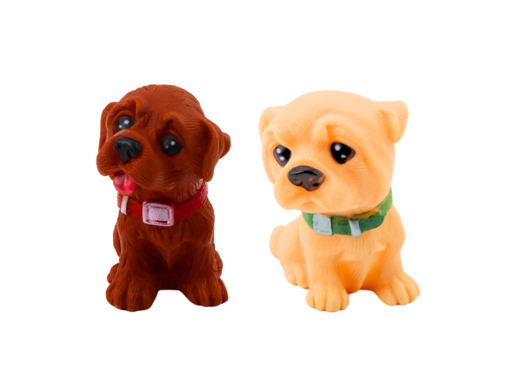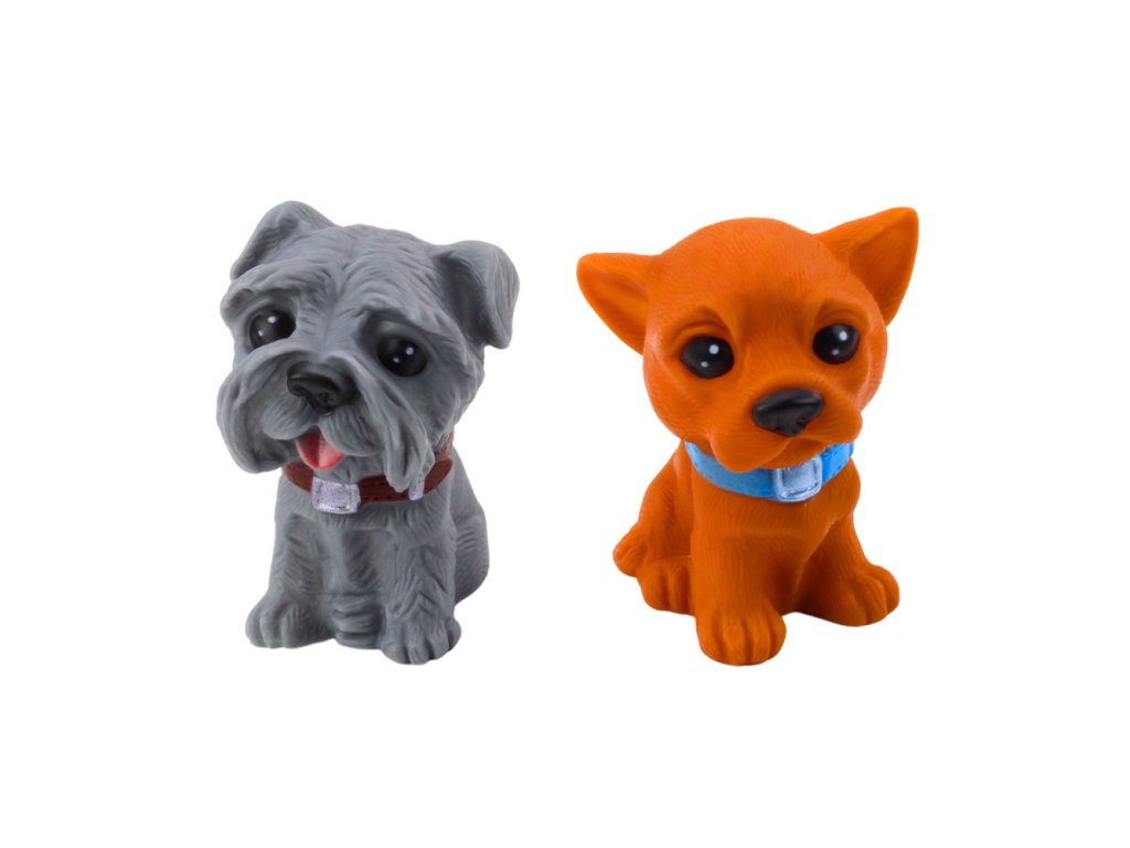 - Každý z pejsků je pečlivě vytvořen z měkkého a bezpečného plastu, což jim dodává realistickou podobu a zároveň zaručuje jejich odolnost při každodenních hrách