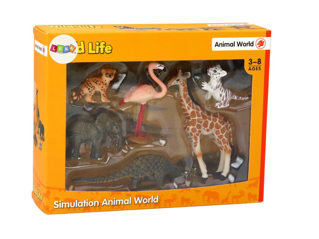 Sada Figurkek Zvířata Žirafa Plameňák Slon Tygr