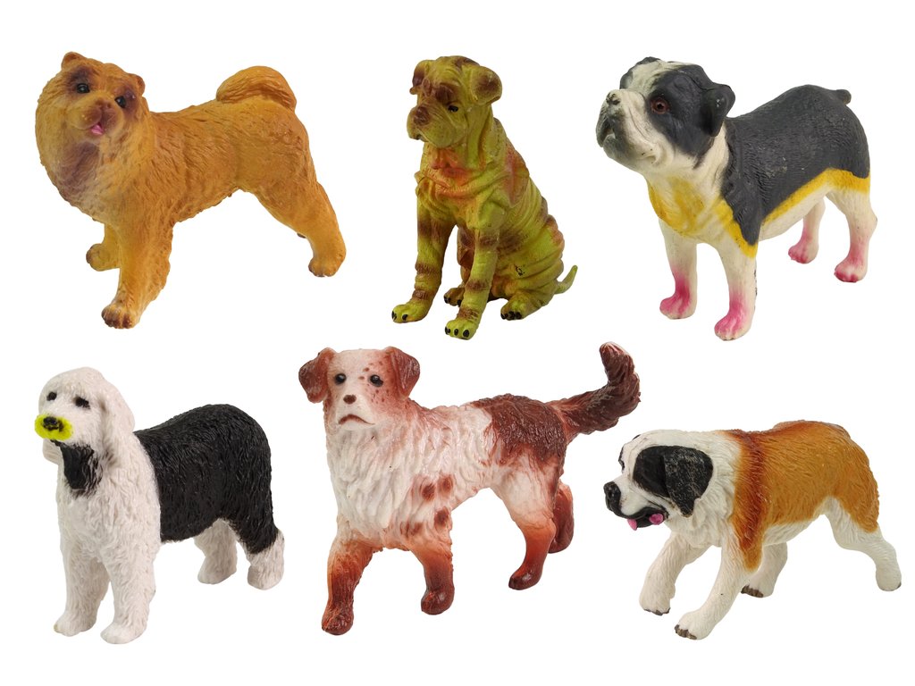 Naše sada 6 figurek jistě potěší každého milovníka psů všech plemen Každá figurka byla pečlivě odlita z plastu a velmi pečlivě namalována, díky čemuž věrně odpovídá skutečnému vzhledu zvířete, postavy nebo předmětu