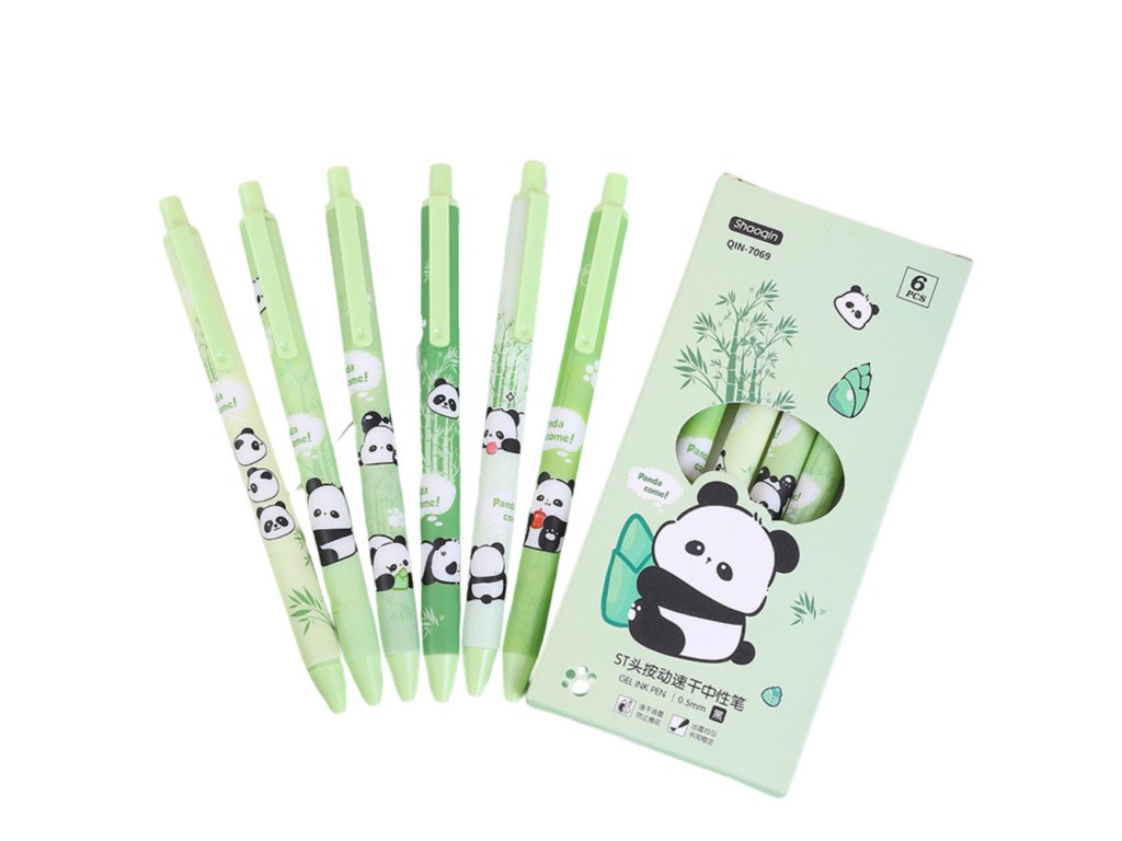 - 6 kusů Tato sada gelových per s roztomilým motivem pandy není jen praktickým nástrojem pro psaní, ale také stylovým a zábavným doplňkem do školní či kancelářské výbavy