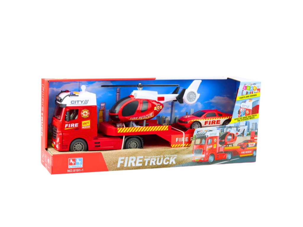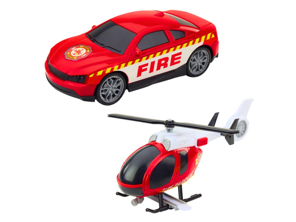 Sada Hasičská Nákladní Helikoptéra Auto Světla Zvuky