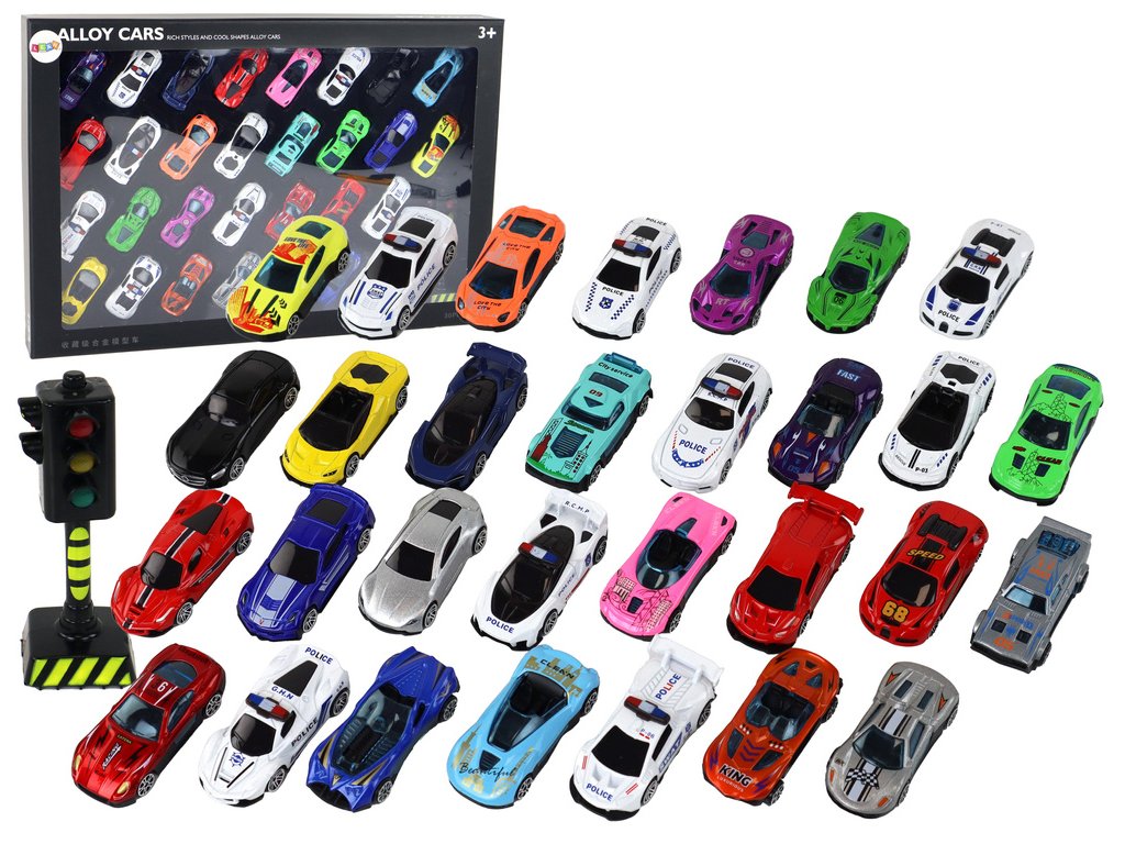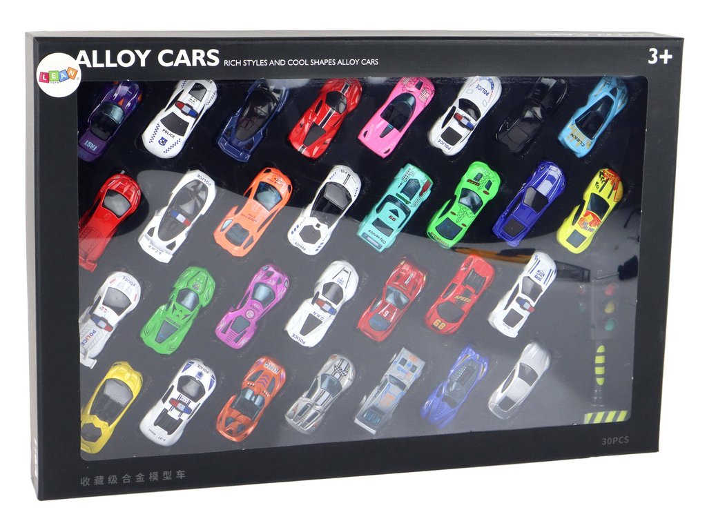 - 30 kusů, sportovní a policejní auta Představujeme vám sadu hliníkových autíček, která zajistí nekonečnou zábavu pro malé milovníky aut