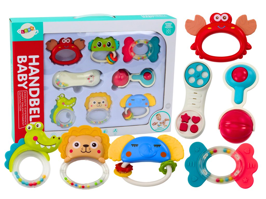 Sada Hraček Chrastítek Kousátek Zvířátka 8 Kusů