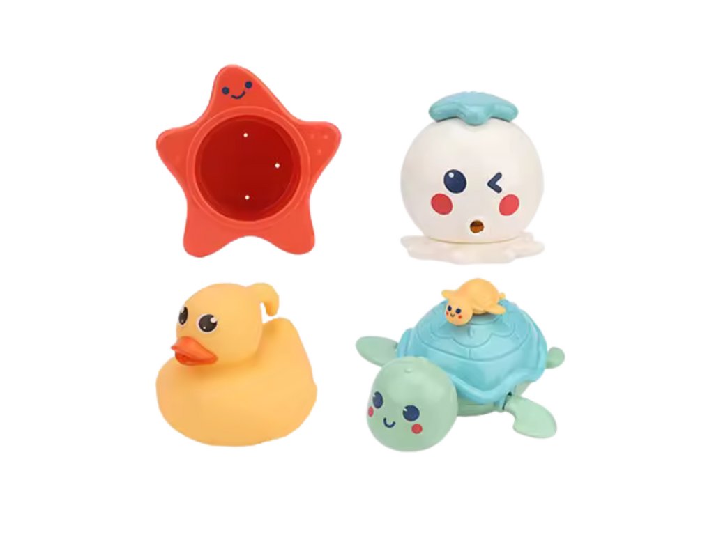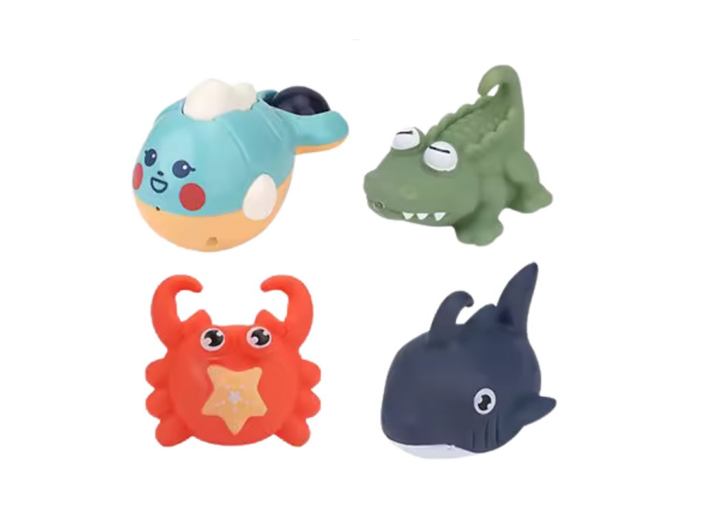 Hračky se vznášejí na vodě, stříkají vodu a mají otvory, kterými lze vodu přelévat, což činí koupel ještě atraktivnější Sada obsahuje: