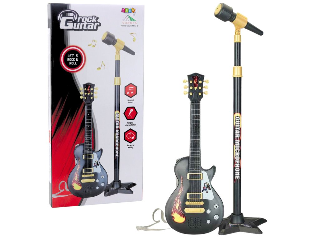 - Díky této sadě, která obsahuje kytaru a mikrofon na stativu, se mohou vaše děti přeměnit ve skutečné umělce