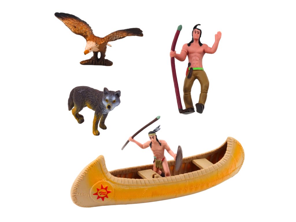Sada Indiánské Figurky Vesnice Indiáni Stan Tipi Kajak Totem
