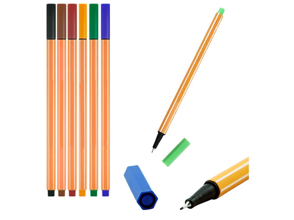 Sada Kancelářské a Školní Linery Tenký Hrot 0,4mm Barevné 6ks