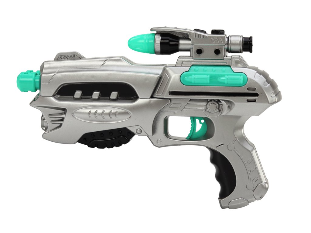 - Pistole vybavená zvukovými efekty a zvuky výstřelů vás přenese přímo do žhavých vesmírných bitev