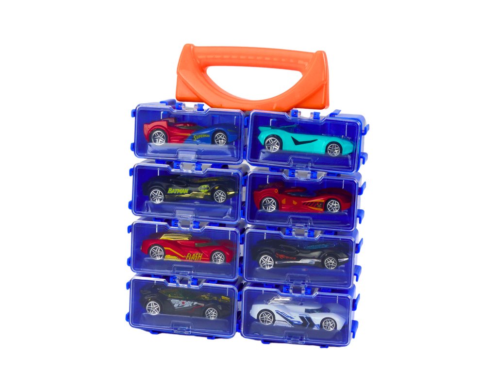 - Přepážky uvnitř kufříku bezpečně drží každé autíčko na svém místě a chrání je před nechtěným pohybem