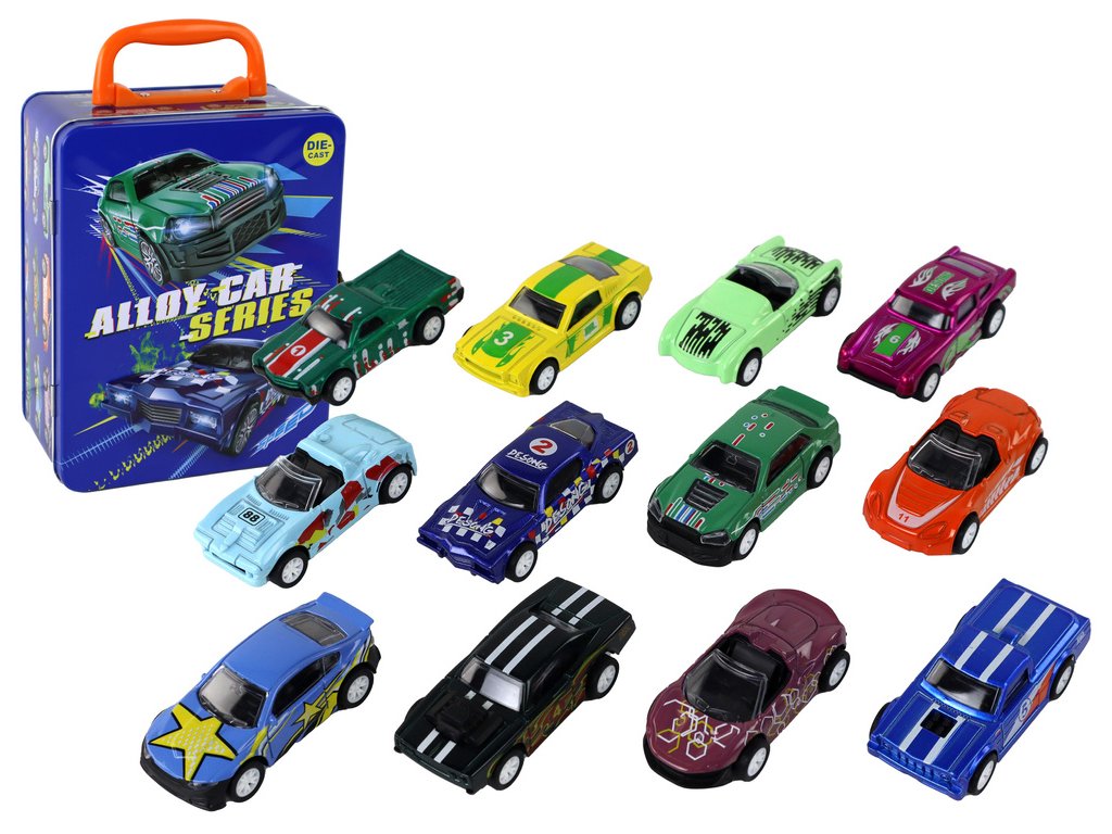 - Kovový kufřík s motivem sportovních vozidel