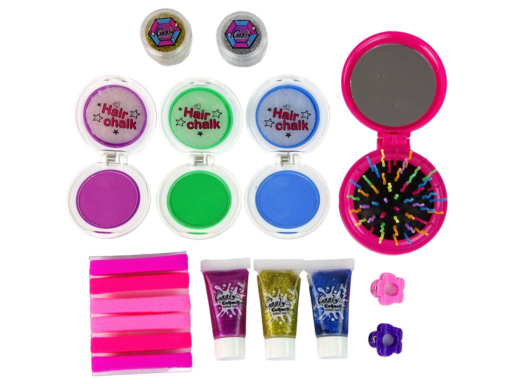 - Kabelka sada na zdobení vlasů Růžová plastová taška o rozměrech 16 cm x 19 cm x 6 cm, která skrývá skutečný poklad pro milovnice krásy!