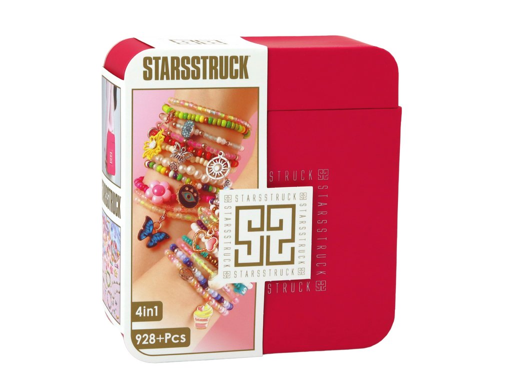 - Sada na výrobu šperků v krabičce s přívěsky a sponkami Představujeme vám jedinečnou sadu pro výrobu náramků, zabalenou v elegantní růžové krabičce!