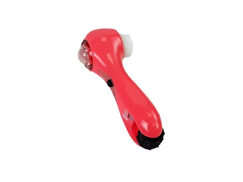 - Sada obsahuje masážer na baterie s dvěma vyměnitelnými koncovkami, které umožňují jemné čištění nebo masáž obličeje a těla