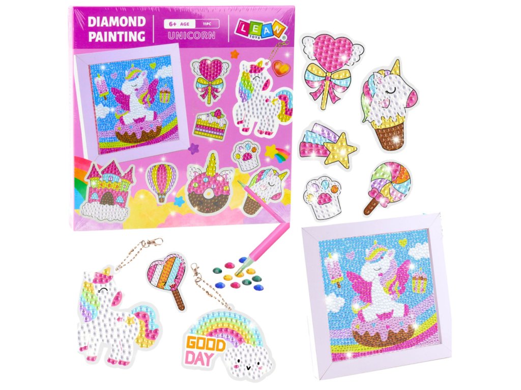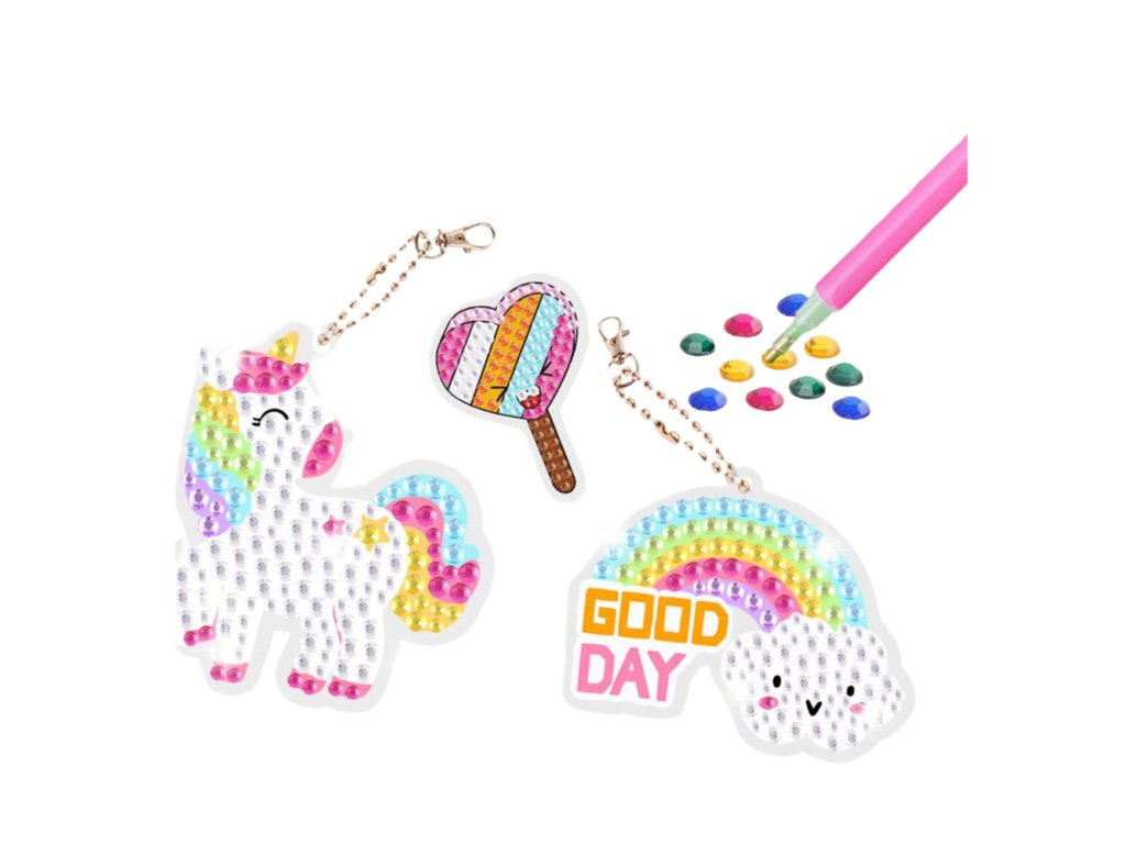 Sada Kreativní Diamantová Mozaika Přívěsky Jednorožci Barevné je skvělá volba pro děti i dospělé, kteří milují ruční práce a třpytivé detaily Díky barevným diamantíkům různých tvarů každá vytvořená ozdoba získává jedinečný trojrozměrný efekt