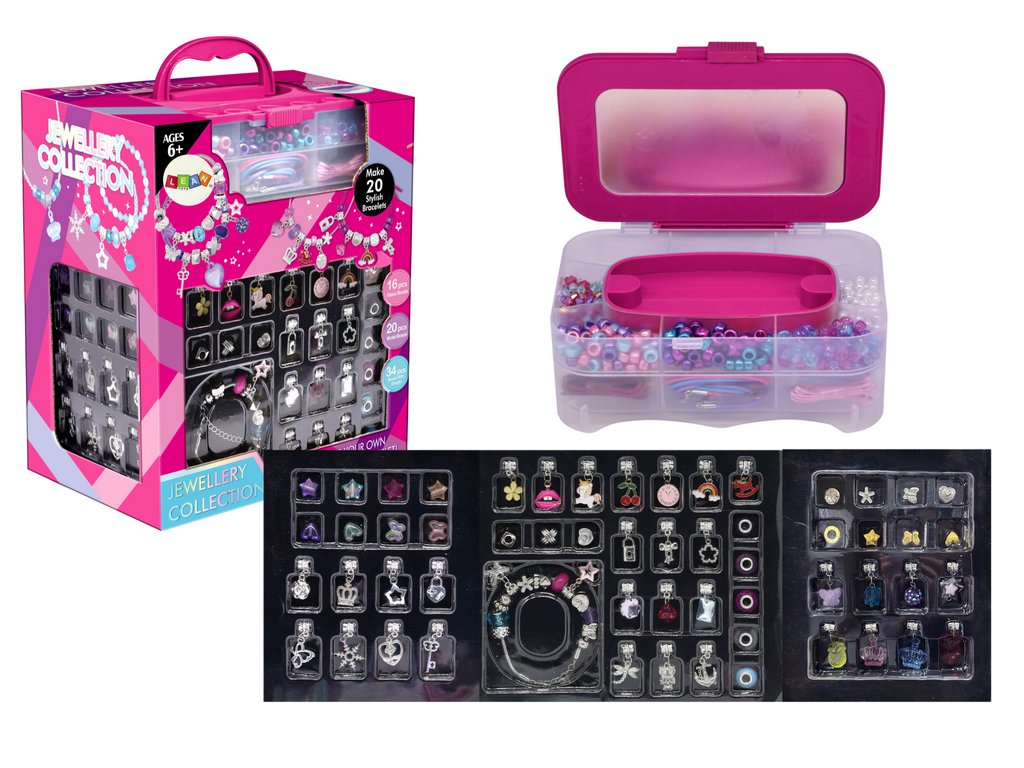 Kreativní sada na výrobu náramků, přívěsků a korálků Sada na výrobu náramků není jen kreativní zábava, ale také kouzelný prostor, kde děti mohou vyjádřit svou individualitu a jedinečnost prostřednictvím výroby šperků Bohatý výběr korálků, přívěsků a doplňků umožňuje každému dítěti najít něco, co dokonale odráží jeho osobní styl a fantazii