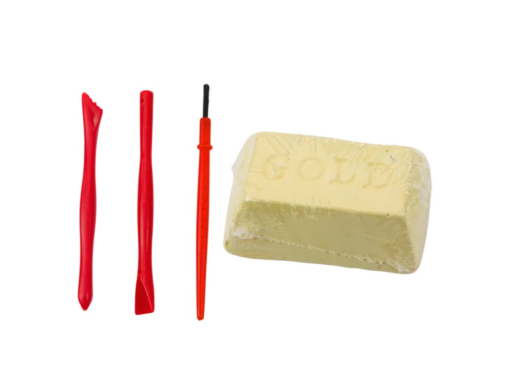 Každé balení obsahuje sádrový blok, ve kterém je ukryt náhodný kousek zlata nebo minerálu Úkolem dítěte je samostatně tento tajemný „poklad“ objevit